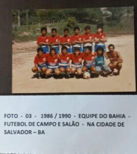 “Eu joguei muito tempo pelo Bahia, não era o time de dentro mesmo do Bahia, mas pelo Bahia. Era formado por um cara Diretor do Bahia, era taxista, mas ele amava tanto o futebol feminino que ele pegou uma casa dele, que ele tinha, e botou a gente dentro pra poder morar. E ele também sustentava a gente, ele fez uma comissão técnica, e os caras da comissão técnica davam feira, gás, uniforme (…) que nem uniforme o Bahia dava.”