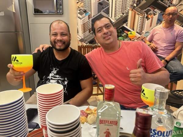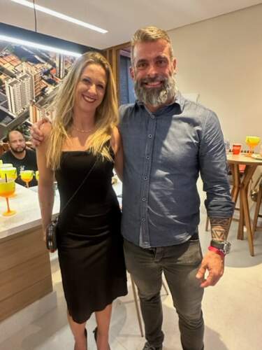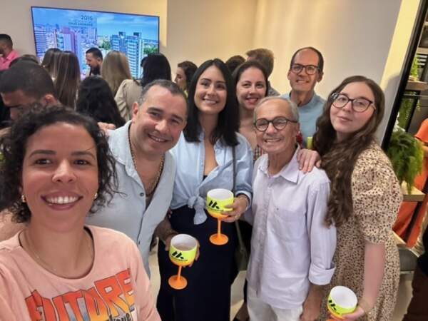No último sábado, 19, o casal Daniela e Marcos Andrade, em clima de confraternização, recebeu amigos para apresentar a Área de Convivência na sede da construtora, foi no final da tarde e se prolongou pela noite.
