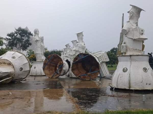 O vendaval que atingiu a cidade de Vitória da Conquista, arrastando coberturas de galpões e Casas, destruindo Ruas, levando placas como folhas de papel, arrancado árvores pelas raízes, atingiu também nosso Museu estragando diversas obras, que demandarão muito custo e esforço para recuperar.