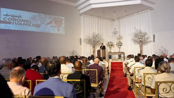 Registro feito para nossos ouvintes e leitores. O Coronel Ivanildo se despediu emocionado, chegando às lágrimas ao ouvir as palavras de sua querida filha, esposa e de todos que subiram à mesa de honra para expressar carinho e agradecimento a essa figura tão admirada e querida pela cidade.