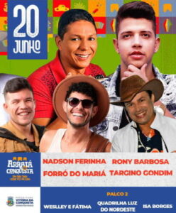 Arraiá da Conquista está agradando ao público, e hoje será mais uma noite de grandes atrações: Targino, Nadson Ferinha, Forró Mariá e Rony Barbosa!
