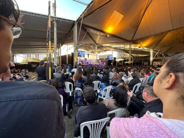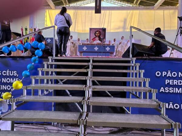 Desde cedo, o pipocar de fogos e as missas que se sucediam culminaram com a última celebração no Parque de Exposições, para onde uma multidão se dirigiu.