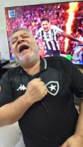 A expressão do jornalista Giorlando Lima mostra que o torcedor do Botafogo não tem limites para demonstrar o seu amor pelo clube. O Glorioso é campeão brasileiro.