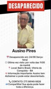O Sr. Ausino Pires continua desaparecido. Ele está sumido desde o dia 24 de junho.