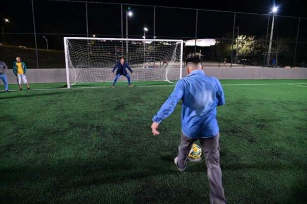 “A gente está muito agradecido pela reforma do campo. Está de parabéns à Prefeitura e à Secretaria de Esportes. Ficou muito bom o campo”, celebrou Manuel Oliveira. Babeiro às sextas à noite com os colegas de uma loja de material de construção no campo de futebol society da Lagoa das Bateias, ele relatou ser esse momento de lazer e descontração com os amigos.
