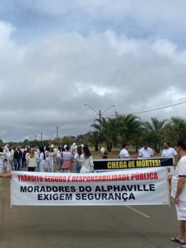 E, por fim, parabenizamos os moradores do Alphaville pela indignação e pela forma ordeira e pacífica com que se conduziram na manhã de ontem, todos vestidos de branco. Também queremos destacar o papel importante da Polícia Militar, que se fez presente no local, dando total segurança e proteção aos manifestantes, assim como a presença do Simtrans, organizando o trânsito.