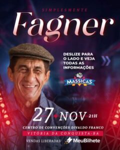 Raimundo Fagner veio a Vitória da Conquista pela primeira vez em 1976. Portanto, quando subir ao palco no próximo dia 27 de novembro, no Centro de Convenções Divaldo Franco, ele estará celebrando 55 anos dessa relação afetiva e artística com o público conquistense e regional. Será uma oportunidade única para reverenciar um dos maiores nomes da música brasileira, justamente num momento em que Fagner mantém agenda seletiva e se apresenta apenas em locais que tenham importância afetiva e histórico-cultural em sua trajetória. E Vitória da Conquista, por ser considerada um polo regional consolidado, recebe esse privilégio.