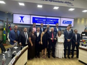 Senador Ângelo Coronel demonstra prestígio e lota a Câmara ao receber o Título de Cidadão Conquistense. A proposição foi da vereadora Léia de Quinho.