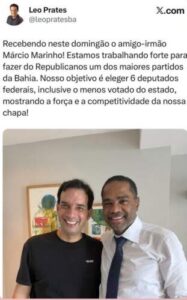 A filiação foi confirmada e celebrada pelo presidente do partido na Bahia, Márcio Marinho, que recebeu Leo Prates com entusiasmo e projeção de crescimento para a sigla. A meta é ousada. Eleger seis deputados federais. :: LEIA MAIS »