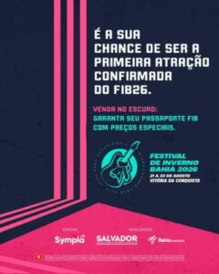 Um dos maiores e mais aguardados eventos musicais do país já começa a movimentar a cena cultural do sudoeste baiano. O Festival de Inverno Bahia, o nosso querido FIB, já tem data confirmada e acontecerá nos dias 21, 22 e 23 de agosto, período em que o clima frio e agradável de Vitória da Conquista dá um charme todo especial ao evento.