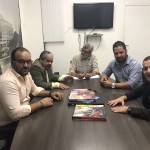 Projetos de recuperação de quadras do lado oeste de Conquista – A reforma de quadras de futebol em bairros do lado oeste de Vitória da Conquista esteve na pauta de reunião entre o deputado Fabrício Falcão (PCdoB), o vereador conquistense, Danillo Kiribamba (PCdoB), e a Superintendência dos Desportos do Estado da Bahia (Sudesb). Os parlamentares entregaram as solicitações ao Diretor Geral, Elias Dourado, e ao Diretor de Operações, Marcos Andrade. Fabrício e Kiribamba pediram a reforma da quadra de futebol da Praça Nossa Senhora dos Verdes, no bairro Brasil. O projeto de recuperação e iluminação está orçado em cerca de R$ 200 mil. Outra solicitação é a reforma da quadra de futebol da Praça Martin Luter king, no Bairro Kadija. Para atender à demanda da Associação de Moradores, serão destinados, via emenda do deputado, recursos da ordem de R$ 180 mil.