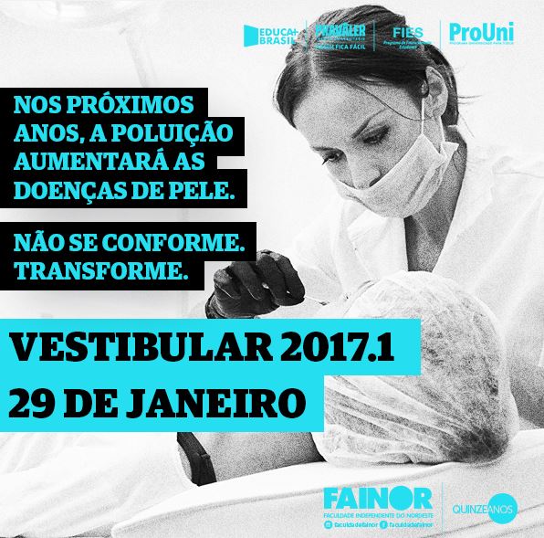 Já estão abertas as inscrições para o Vestibular FAINOR 2017.1. As provas serão realizadas no dia 29 de janeiro, um domingo, a partir das 14h, no campus da Faculdade, em Vitória da Conquista.