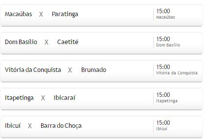 Com duas rodadas para o fim da primeira fase, o Conquista joga no próximo domingo, em Caetité, e encerra esta fase contra o Dom Basílio, no Estádio Edvaldo Flores. A outra vaga do grupo está sendo disputada entre Brumado, Caetité e Dom Basílio.